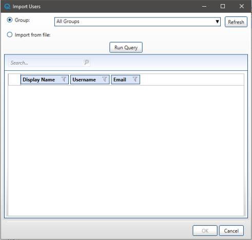 Click the Run Query button to get the list of users from the loaded file.