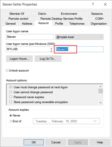 AD Pre-win2000 field (SamAccountName) maps to Cloudshell Username. Click