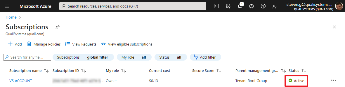 2. Open the Subscriptions page and make sure you have an active subscription.