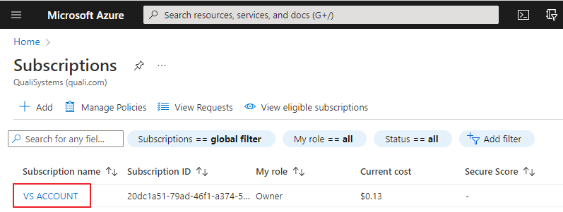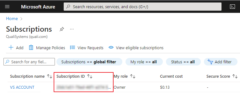 4. Return to the Subscriptions page and copy and store the Subscription ID somewhere you'll remember.