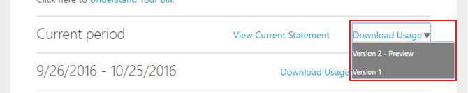 From the Download Usage drop down list, select Version 2 - Preview. The Version 2 CSV file contains the updated terminology and user tags required to properly filter Azure resources.