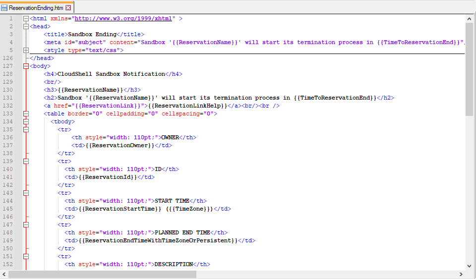 These templates reside on the Quali Server machine at C:\Program Files (x86)\QualiSystems\CloudShell\Server\EmailTemplates and use a combination of text and CloudShell variables that pass information from CloudShell.