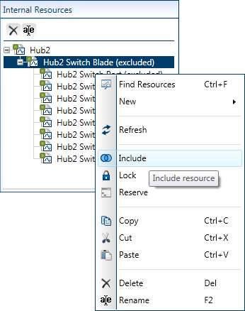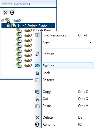 - If this is an existing L1 switch, in the Internal Resources pane, right-click the switch and select Exclude from the context menu.