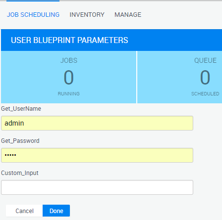 Whenever the admin runs the Update local tests process, the User Blueprint Parameters page will be displayed, prompting the admin to set the custom parameters to be used by the Upgrade local tests process.