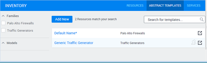 The Abstract Templates page in the Inventory dashboard enables you to control which templates the users will have access to when creating dynamic blueprints.