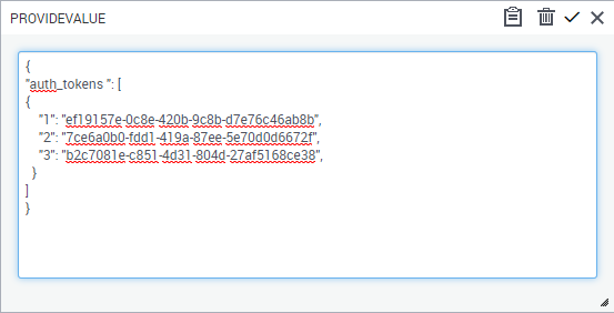 To utilize multiline variable input values of type String (see Variable types ) and JSON format, click the attribute's expand button to open the variable edit window, enter your value and click the check button.