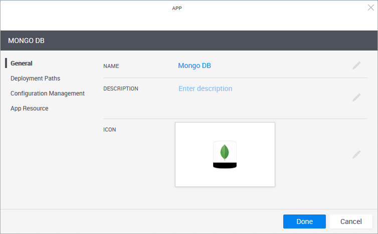 In the General page, you can edit the App's Name, Description and Icon.