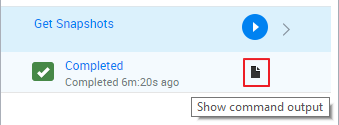 Get Snapshots VMware vCenter Displays a list of the App's snapshots. To see the list, click the command execution’s Show command output button.