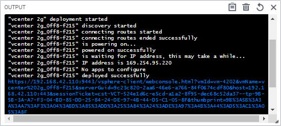 Get VM Web Console VMware vCenter 2G Open the VM’s web console directly from the deployed App. This can be done with or without QualiX (by specifying the credentials of a vCenter user that has at least the Virtual Machine console user role). For details on configuring QualiX support, see Configure VM Web Console Access to vCenter App VMs (QualiX).