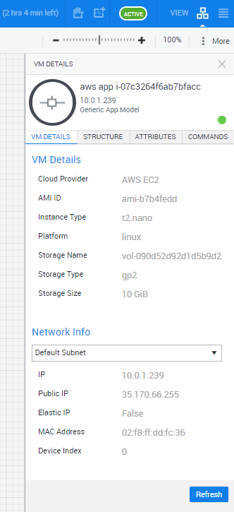Tip: If you ran the Reconfigure VM command on the App and the details are not updated, click Refresh.
