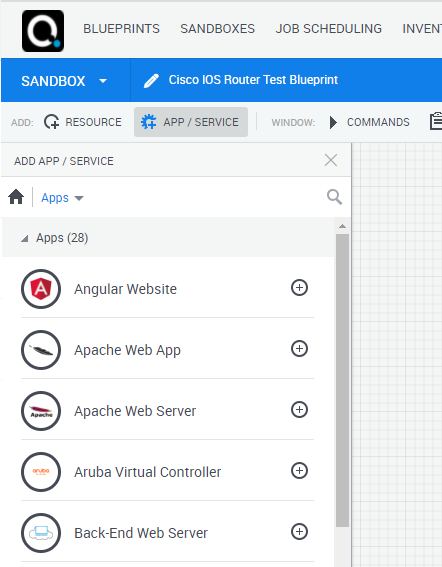 1. In the Diagram view, in the toolbar, click Add App / Service