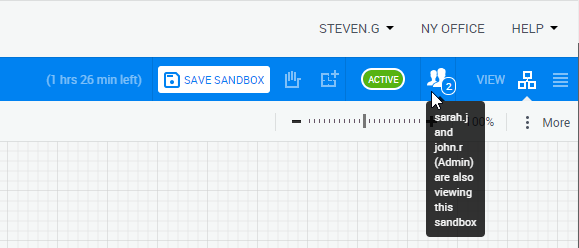 Note: The status bar in the sandbox workspace displays the remaining sandbox time continuously.
