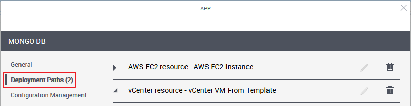A deployment path consists of (1) the selected deployment type (the method to be used to deploy the VM, for example, from a vCenter VM template or AWS AMI image, (2) the VM’s settings such as storage size, CPU and image file, and (3) the CloudShell cloud provider resource that enables CloudShell to access the cloud provider and deploy the VM on it.