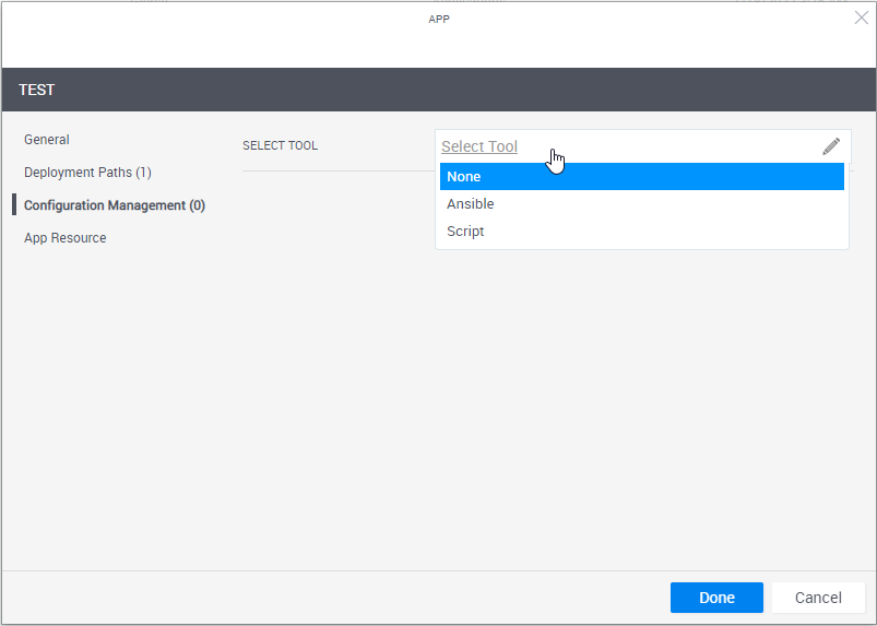 - None: Do not use any Configuration Management option. Use this option if, for example, the image or template already contains the application to install.