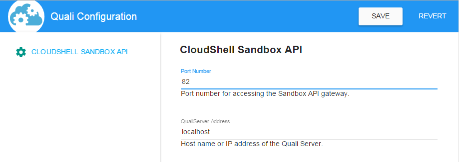 Note: The default port for the CloudShell Sandbox API in the Quali Server is 82. You can customize this port number, as required.