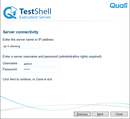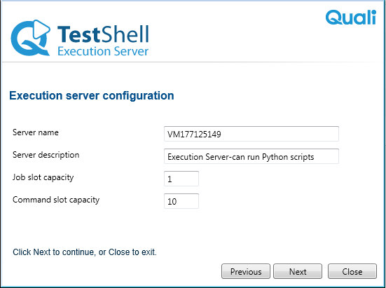 1. Open the Execution Server configuration wizard, as explained in Configure Application Settings. If you are installing or upgrading CloudShell, this wizard will open automatically as part of the setup process.
