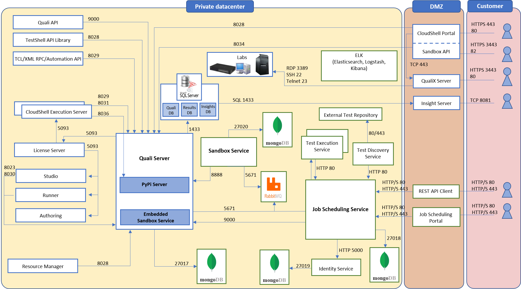 Quali Server TCP/8028 Used by all CloudShell components to communicate with the Quali Server (CloudShell Portal, Authoring, Resource Manager Client, TestShell Studio, TestShell Runner).