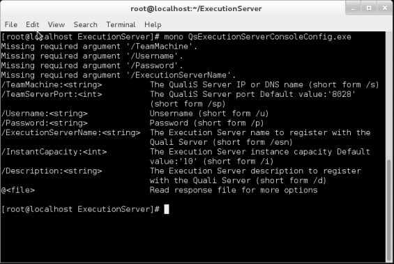 mono QsExecutionServerConsoleConfig.exe /s:192.168.1.66 /u:admin /p:admin /esn:my-exec