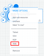 The specified link (in this case Web) is displayed in the More Options list in CloudShell Portal (together with the predefined links to the default access terminals):