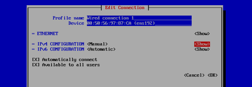 5. In the Edit Connection screen, change IPv4 CONFIGURATION to Manual, and click Show.